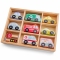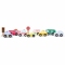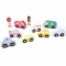 Deze set bevat 10 verschillende speelstukken: 1 politieauto, 1 vuilniswagen, 1 taxi, 1 personenauto, 1 brandweerwagen, 1 raceauto, 1 ambulance, 1 ijscowagen, 1 stopbord en 1 verkeersbord. Wordt compleet geleverd met een houten kist voor eenvoudige opslag of weergave. De voertuigen zijn geschikt voor gebruik op de meeste speelgoedtreinrails.