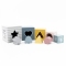 Deze houten blokkenset bestaat uit 5 dozen met verschillende afmetingen en 4 geometrische blokken van massief hout.