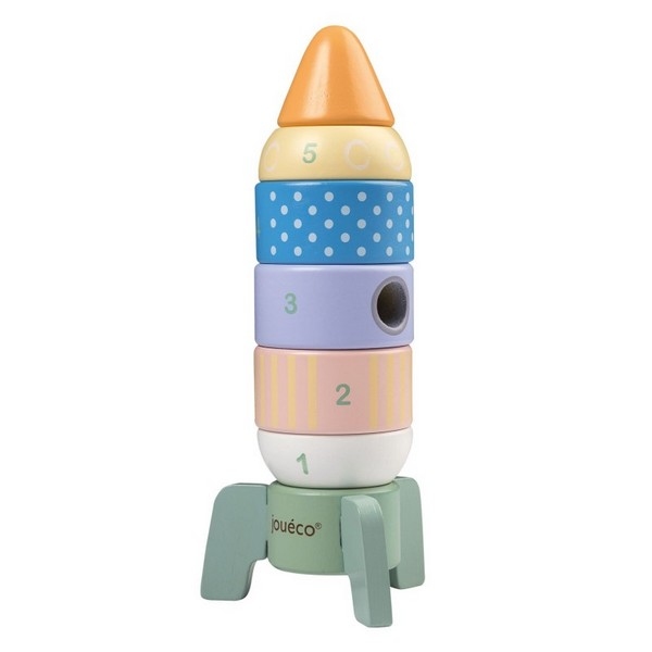 De Wildies Family stapel raket bestaat uit verschillende genummerde onderdelen in vrolijke kleuren.